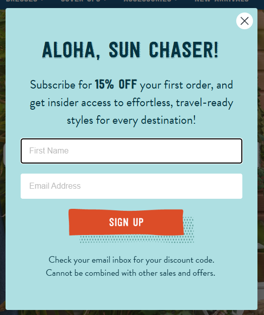First-time customers be sure to sign up via pop-up to receive a 15% discount code via email. *Pop-ups must be enabled on your browser.*